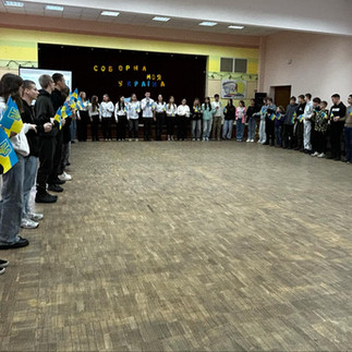22 січня 2025 року учнями 10-А класу (класний керівник Бобро Т.М.) в актовій залі школи для старшокласників був проведений інформаційний вісник із нагоди святкування Дня Соборності України. Діти створили живий ланцюг єдності, заспівали пісню про Україну і цим підтвердили, що хочуть жити, навчатися та працювати у своїй рідній незалежній Соборній Україні!